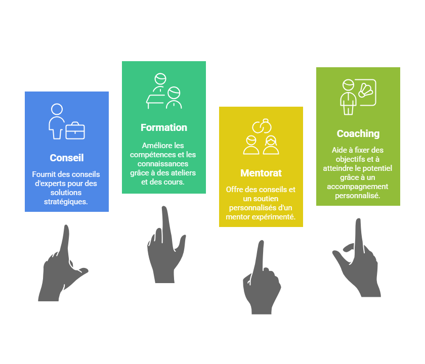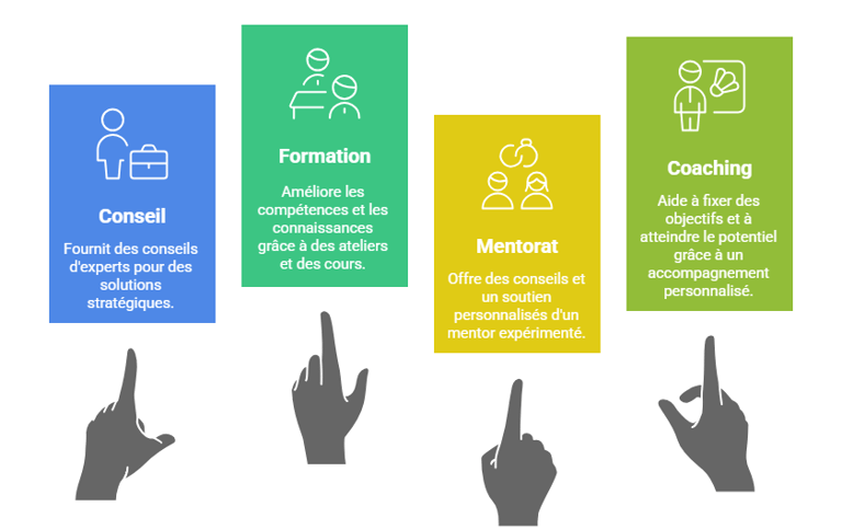 Acte 3 : Vous aurez le choix entre trois modes d'accompagnement suivant le niveau d'autonomie que vous souhaitez avoir pendant la résolution de votre problématique ou l'implémentation de votre plan d'action.